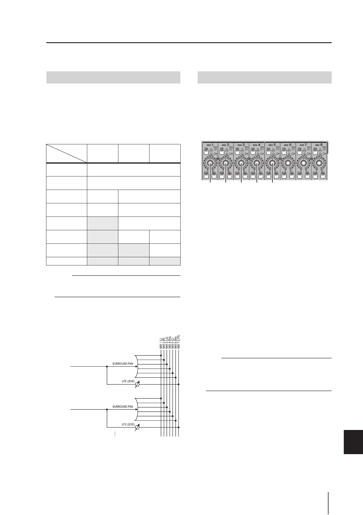 • If MIX buses 9–16 are being used as surround buses, you