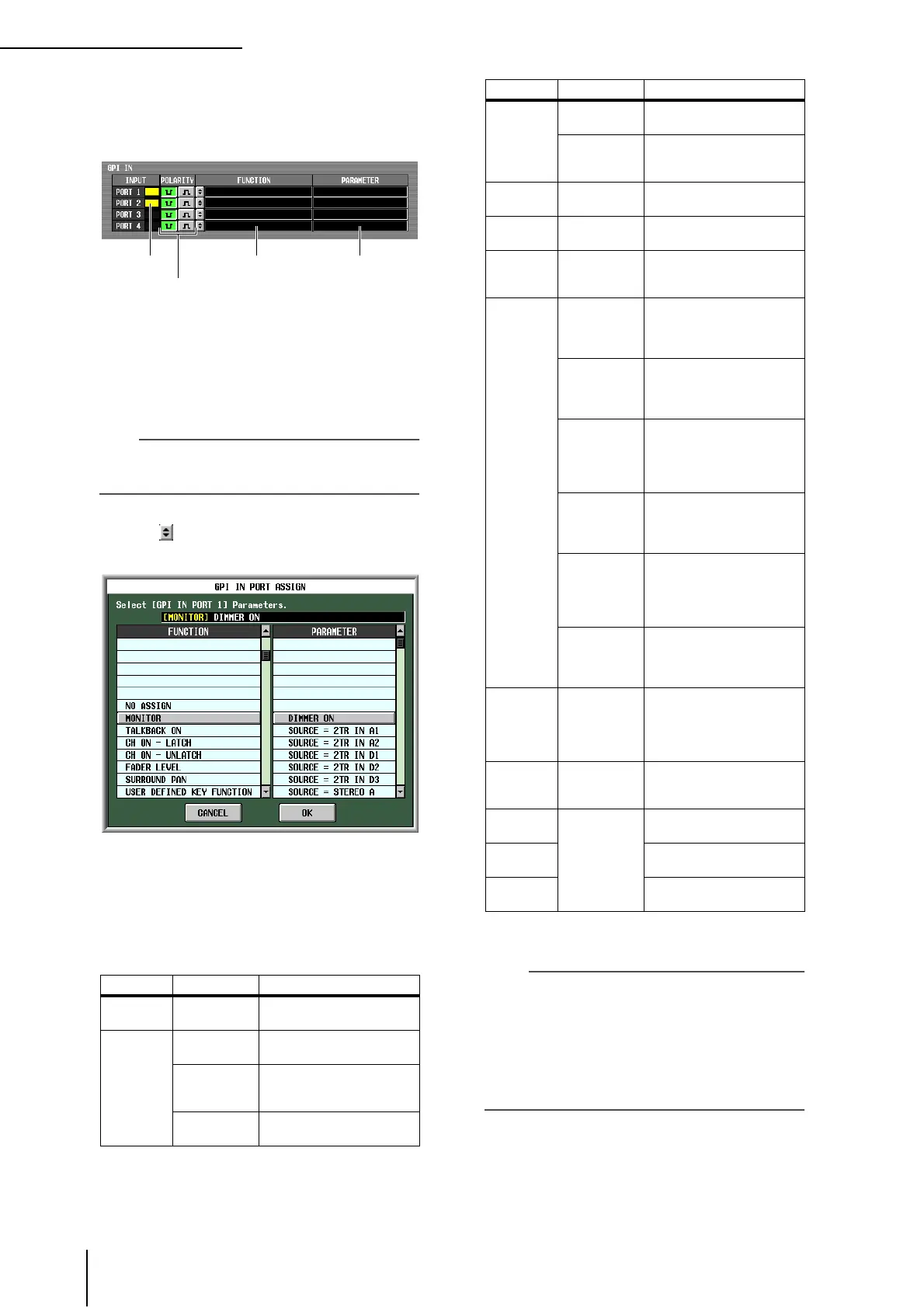 the PM5D function that will be controlled by each GPI
