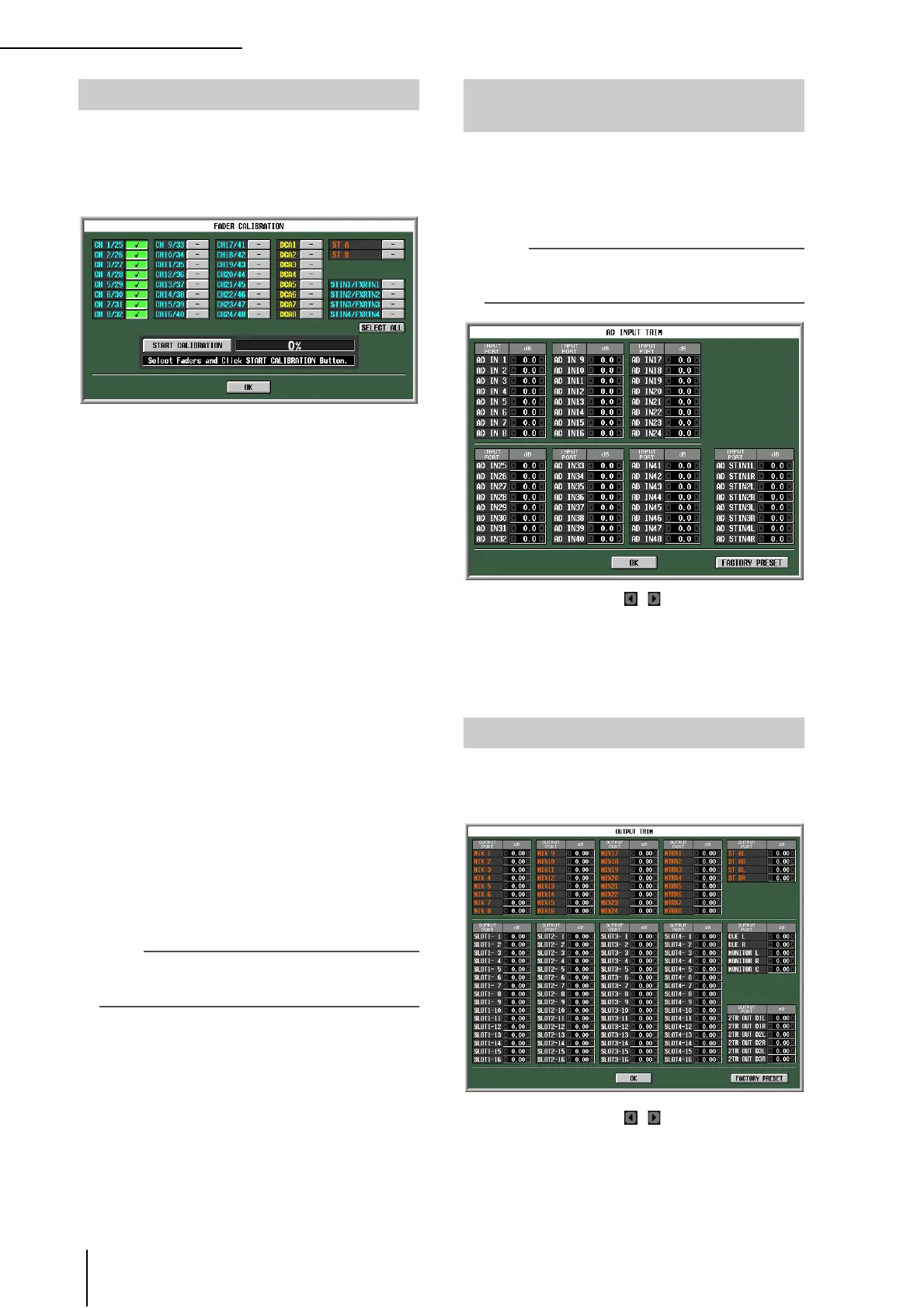 Calibrating the faders Adjusting the analog input gain
