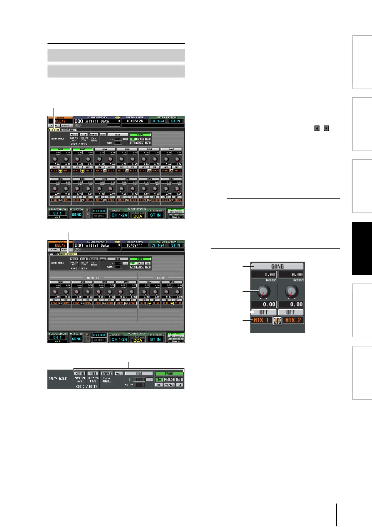 DELAY function screen, the DELAY SCALE setting of the