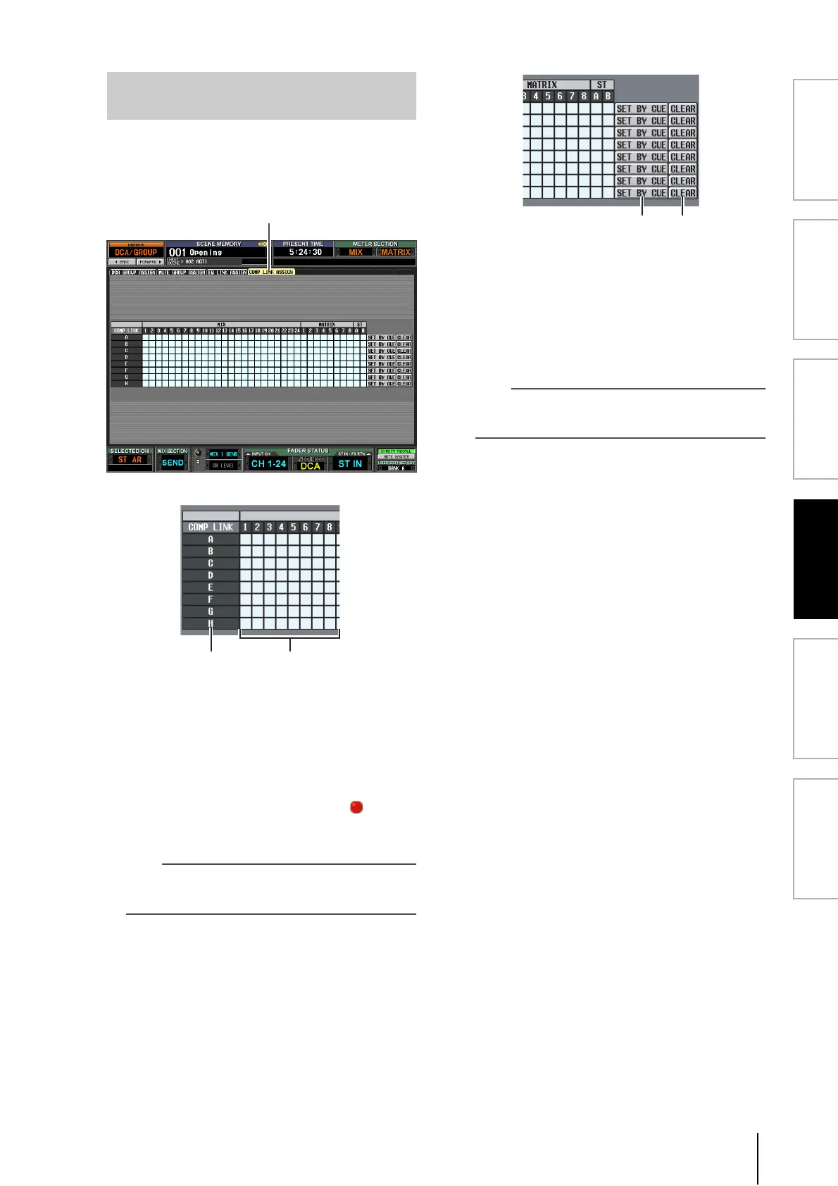 The SET BY CUE button can be turned on for only one com-