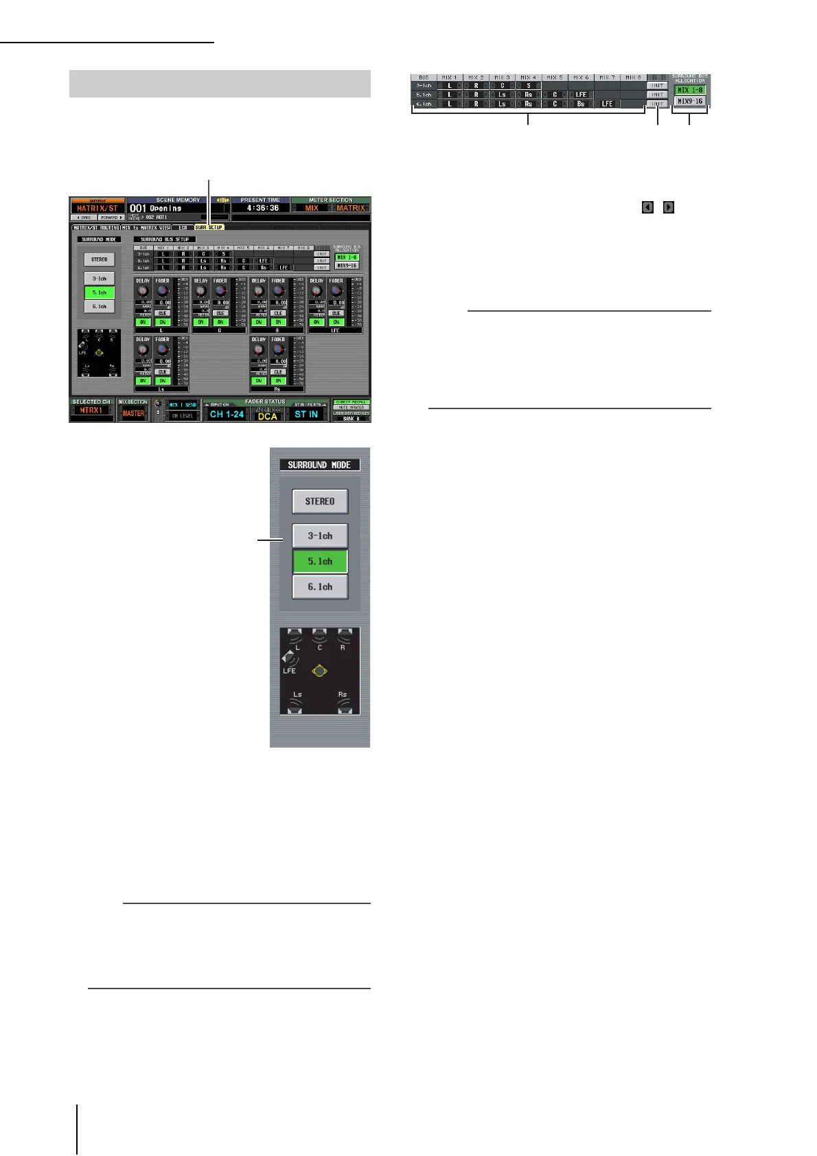 For surround mode 3-1, MIX buses 1–4 or 9–13 can be used.