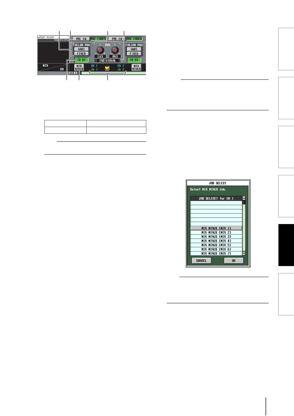 will change in the CH to MIX screen.