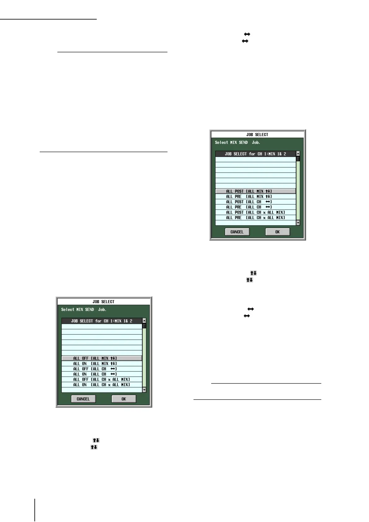 selected), the send level of the signal sent from both chan-