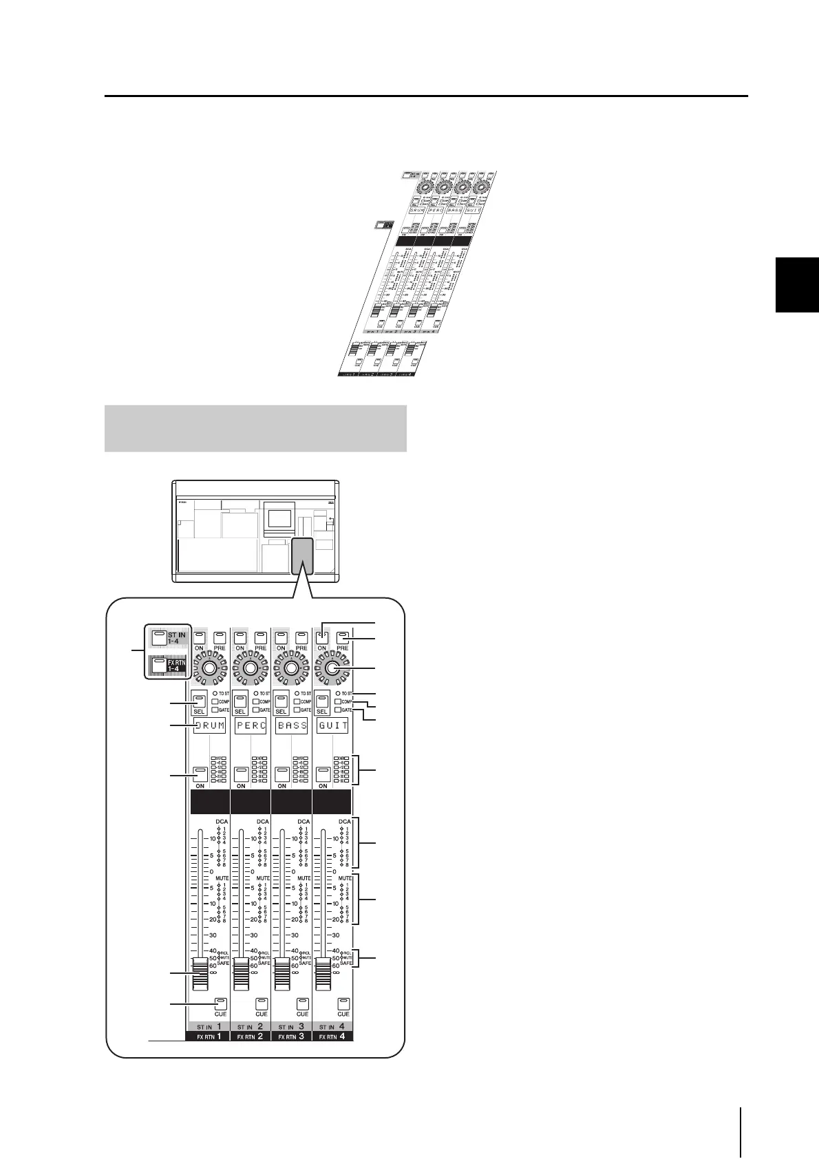 ST IN/FX RTN channel strip. Press the [ST IN 1-4] key
