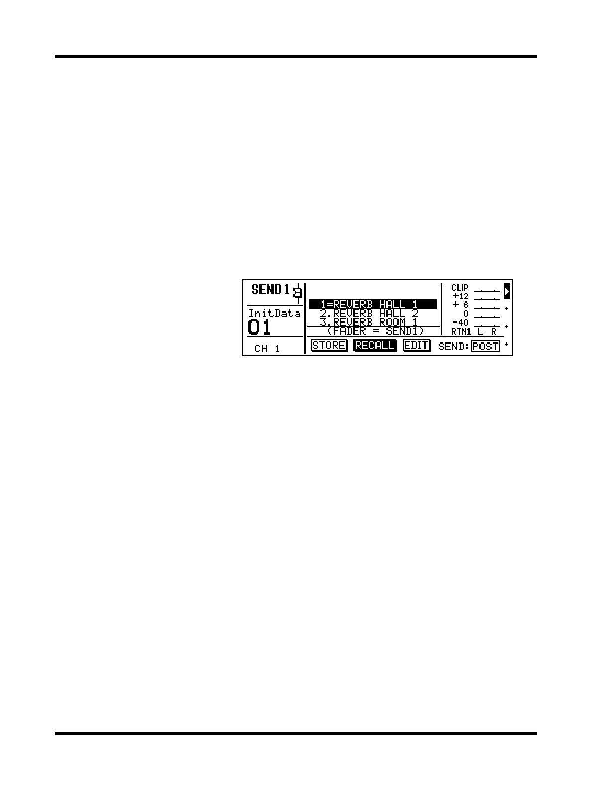 to-send levels. Effects programs are listed in the center and the name