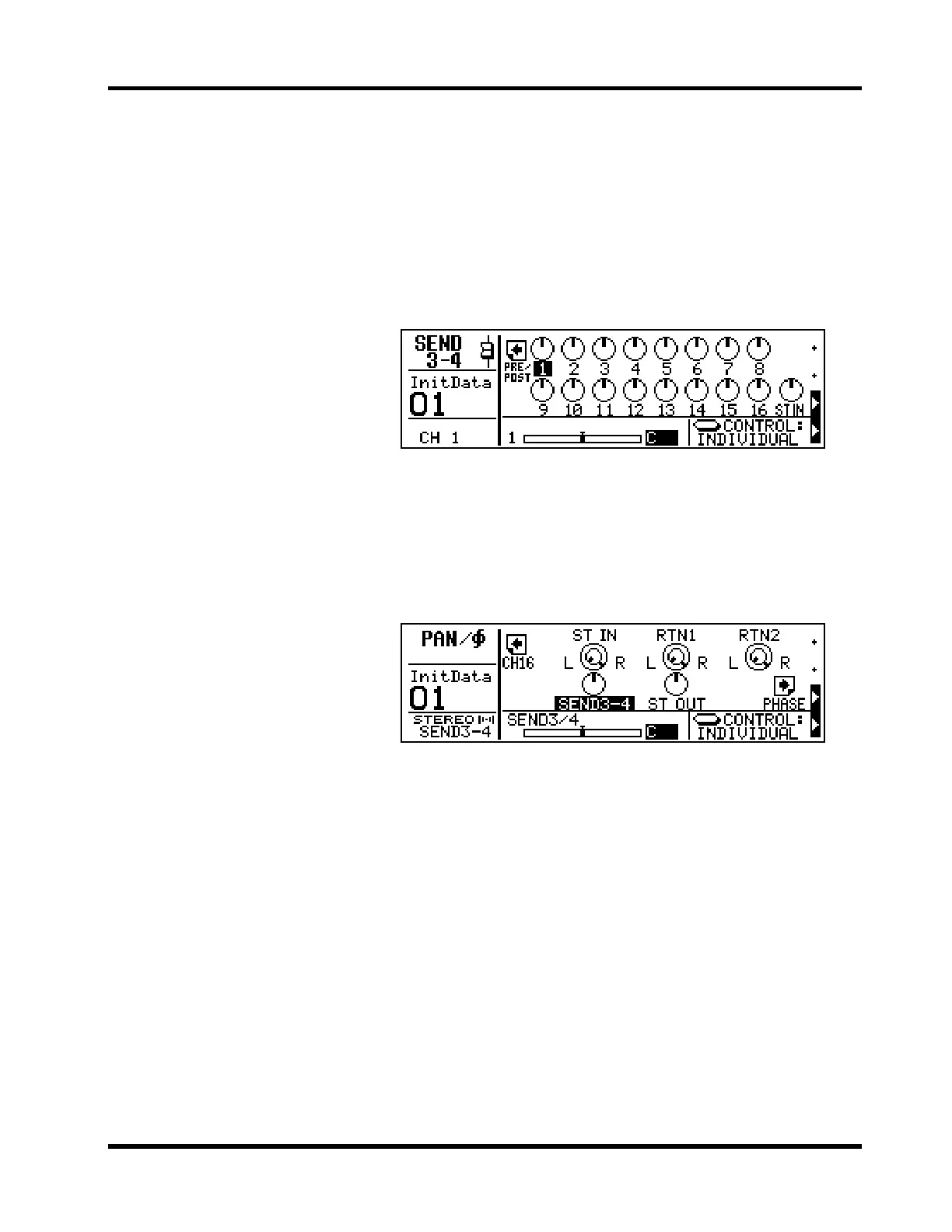 In SEND3-4 Stereo mode, a SEND3-4 pan control is available on each