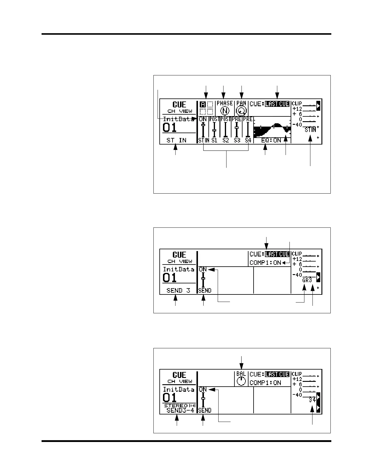 This is the CUE LCD function for the stereo input channel.