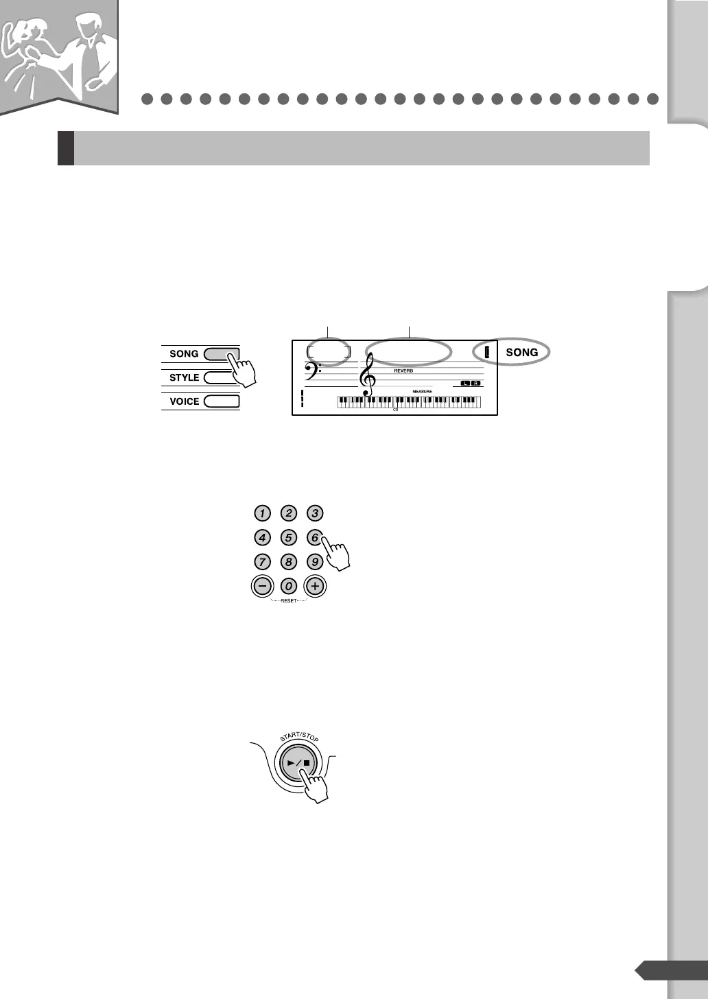 Select the desired Song by using the number buttons [0]–[9], [+], [-].
