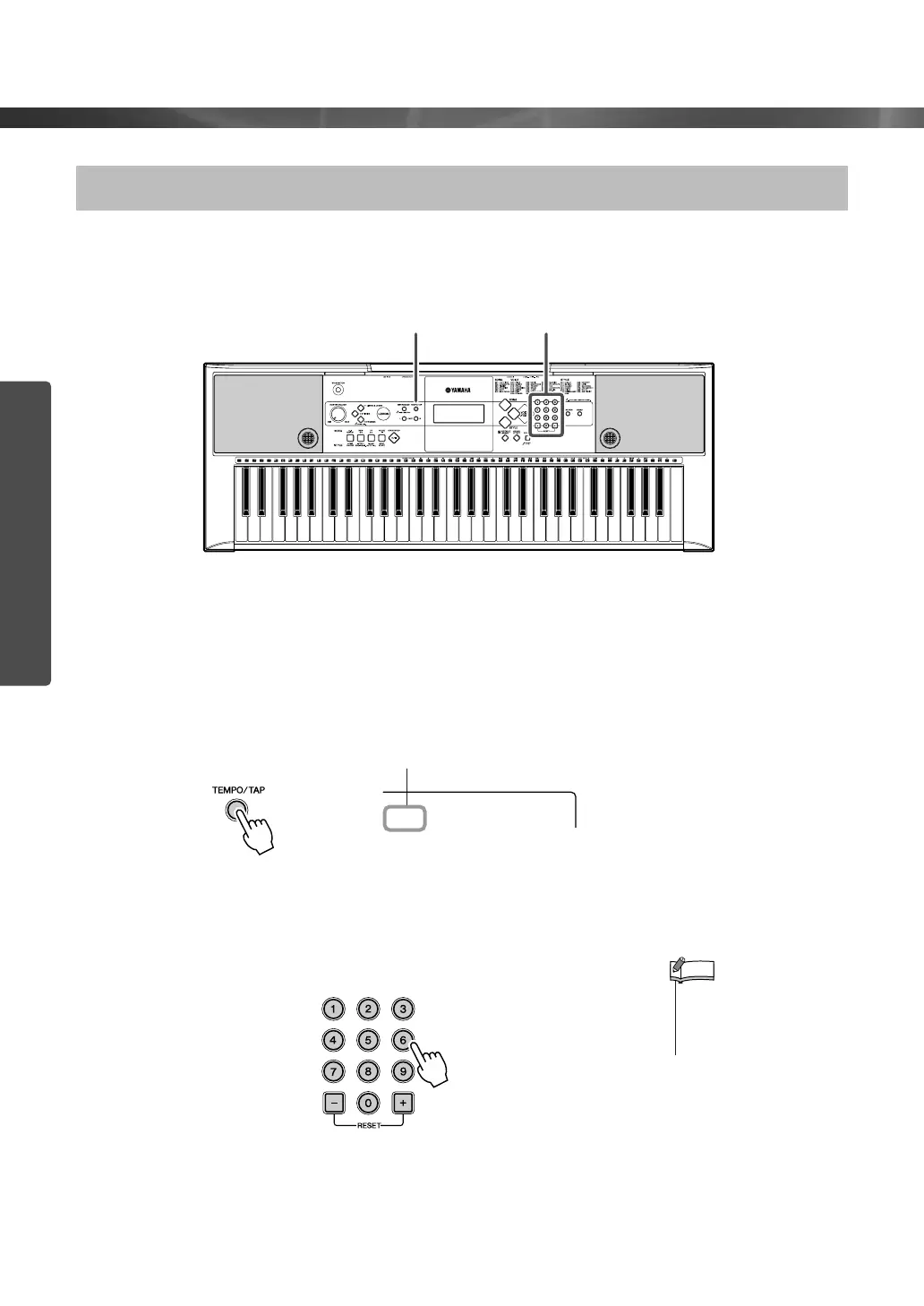 Set the Tempo by using the number buttons [0]–[9], [+], [-].