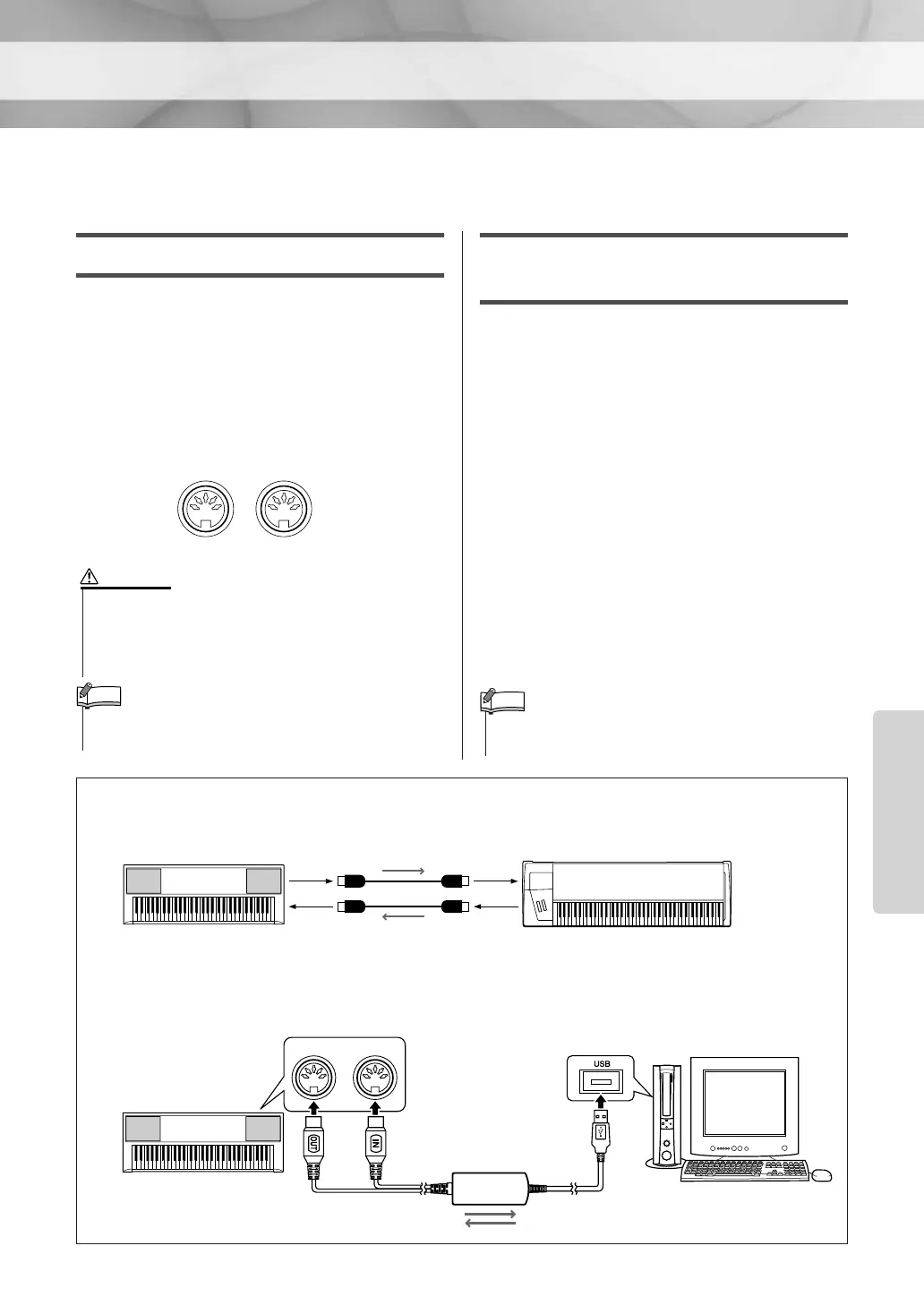 ● When the instrument is connected with another MIDI device, it transmits/receives