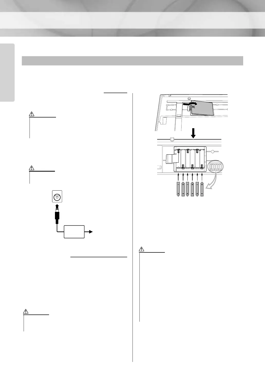 Although the instrument will run either from an optional AC adaptor or batteries, Yamaha recommends use of an