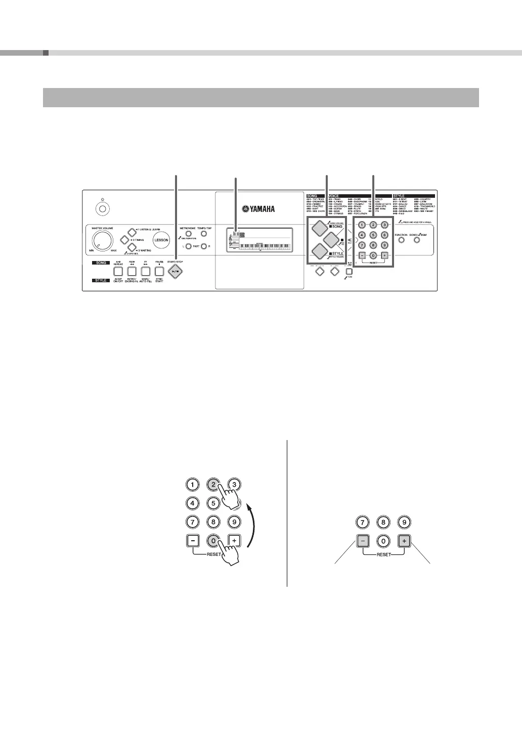 Style.............................. Press the [START/STOP] button to play the Style rhythm.
