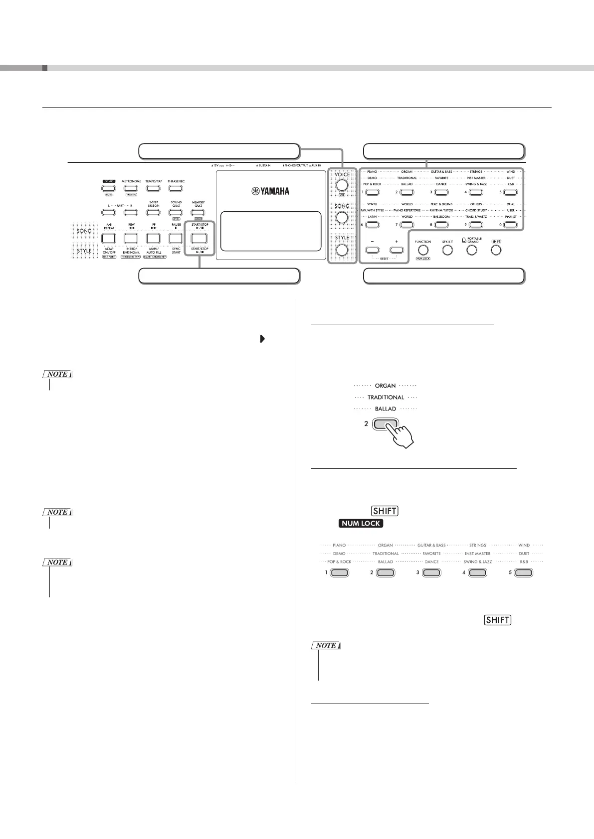 This instrument features three basic functions: Voice, Style, and Song. To use the instrument, select a basic function first, and
