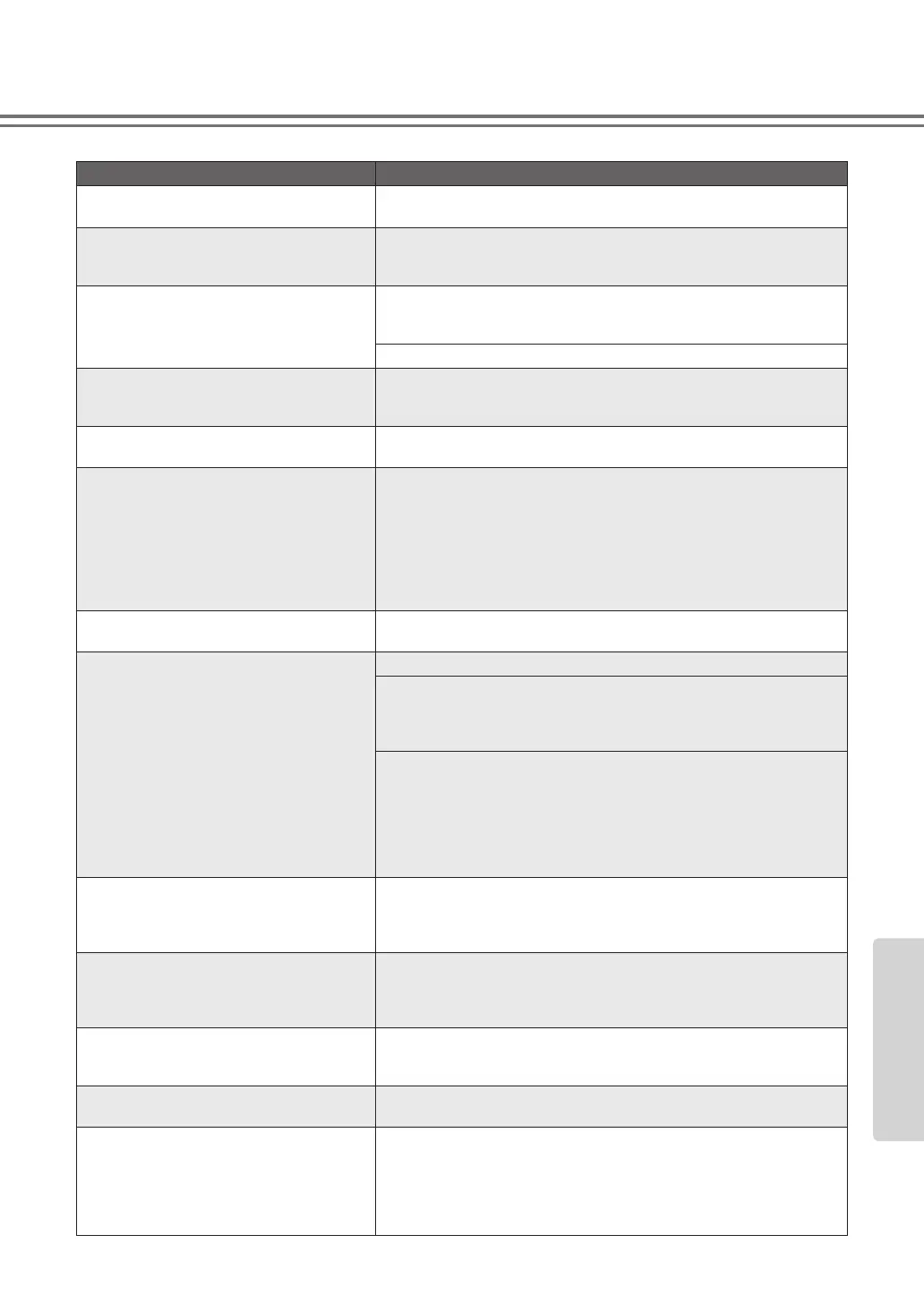 Problem Possible Cause and Solution