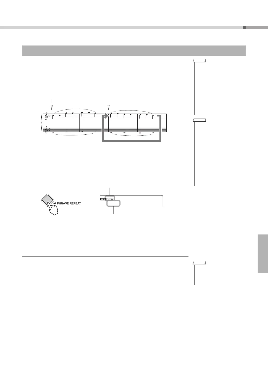 Toque la canción y pulse el botón [PHRASE REPEAT] en la frase que desee repetir.