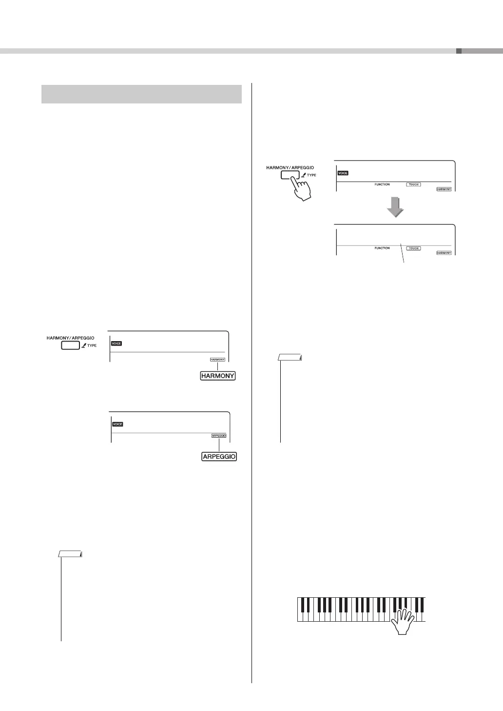 ton to turn on the Harmony or Arpeggio