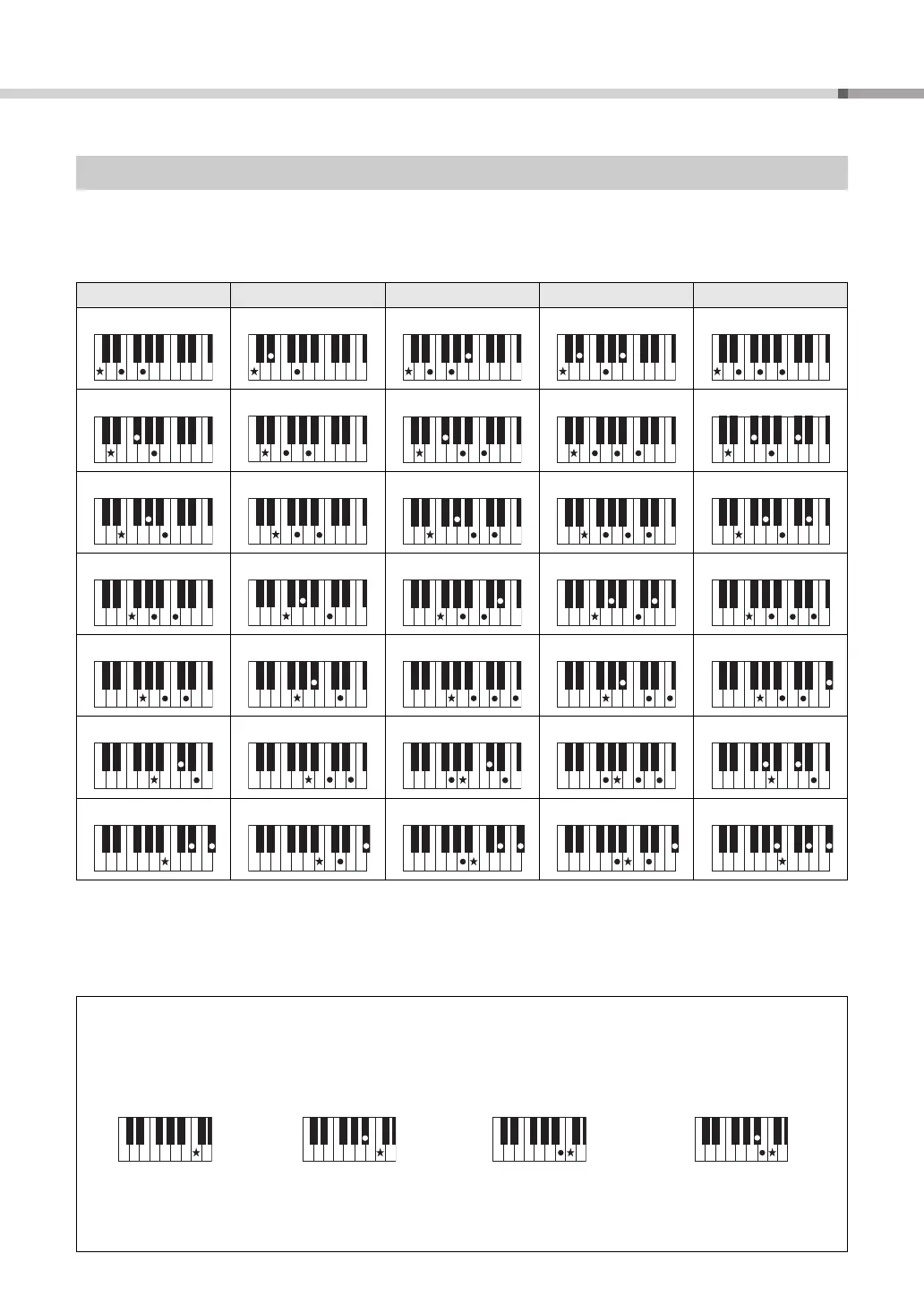 • When playing a chord which cannot be recognized by this instrument, nothing is shown on the display. In such a case, only the rhythm