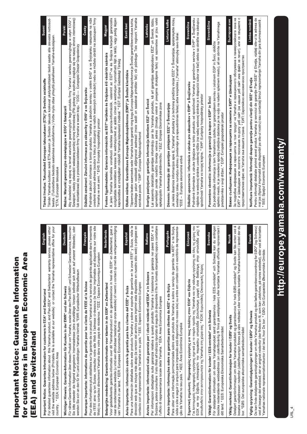 Yamaha PSR-E353 - Guarantee Information (EEA & Switzerland); English Language Information