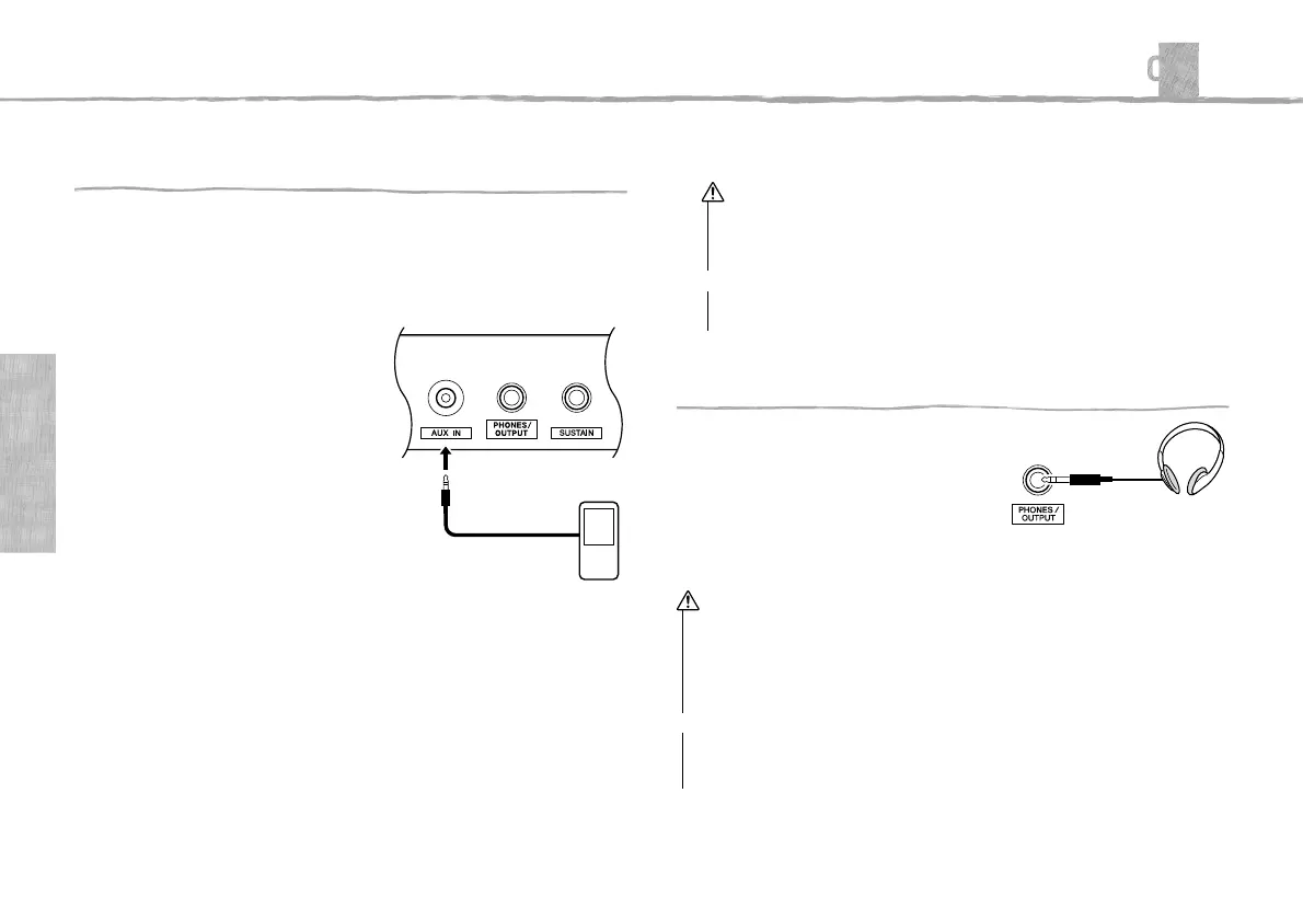 • Do not use the instrument or headphones for a long period of time at a high or uncomfort-