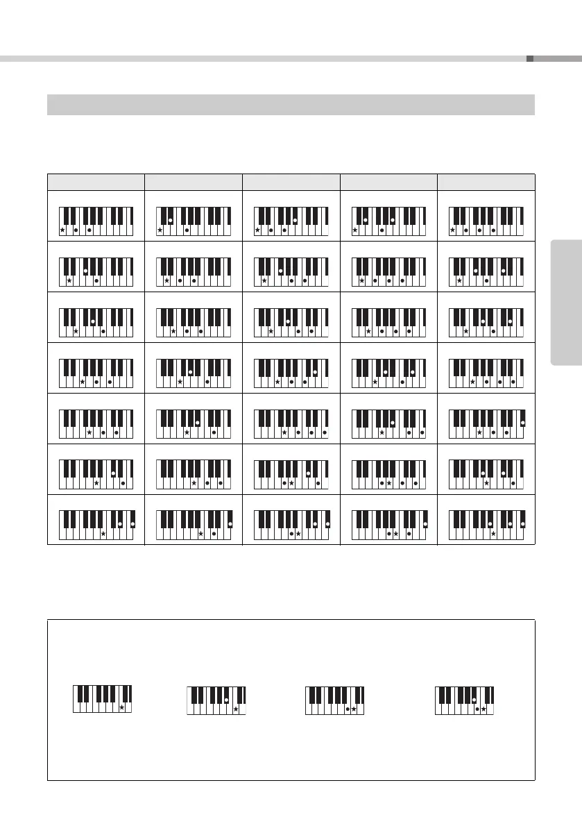 • When playing a chord which cannot be recognized by this instrument, nothing is shown on the display. In such a case, only a specific
