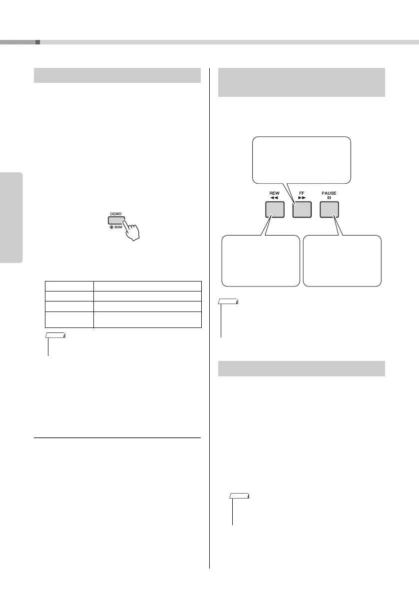 • [REW], [FF] and [PAUSE] button cannot be used during Song