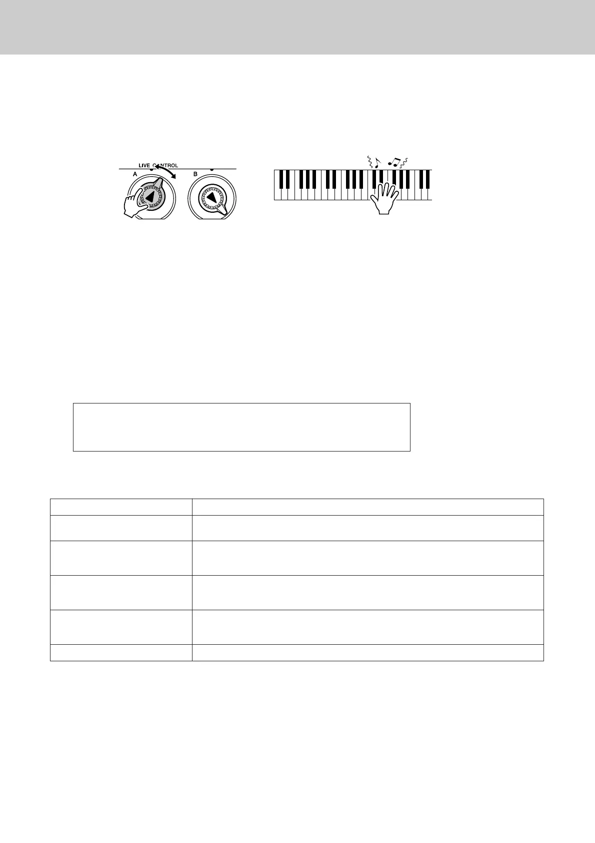 b STYLE TEMPO Play a style and/or arpeggio (page 14) and use Knob A to adjust the tempo.