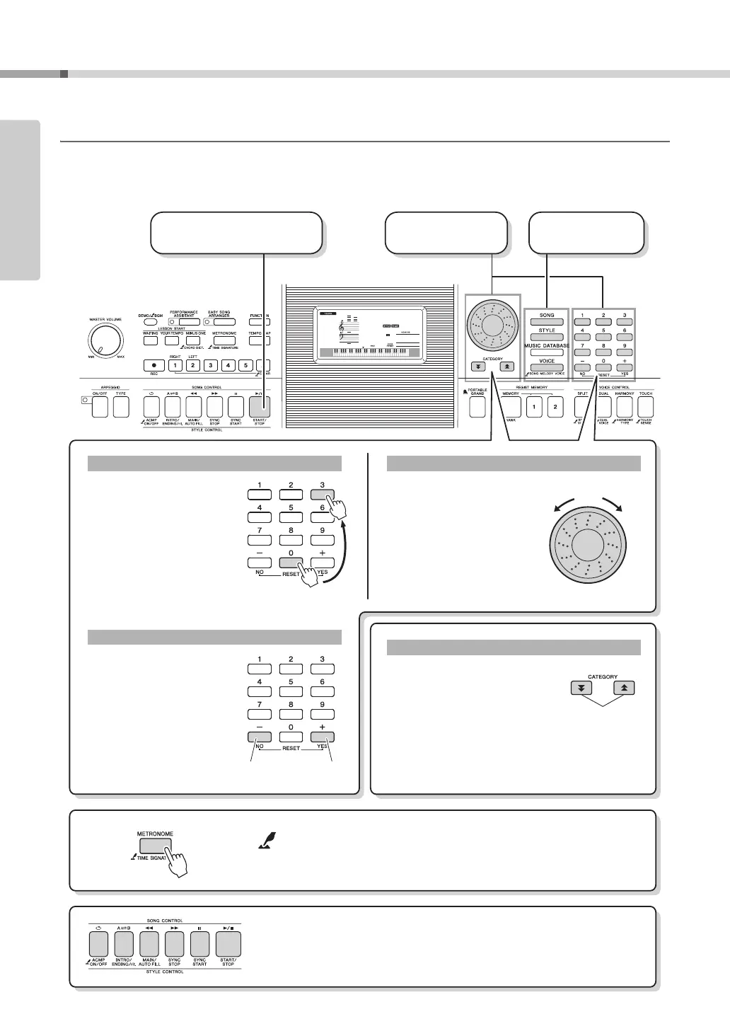Press a button to select a basic function: Voice, Style or Song. To change the instrument voice that sounds when