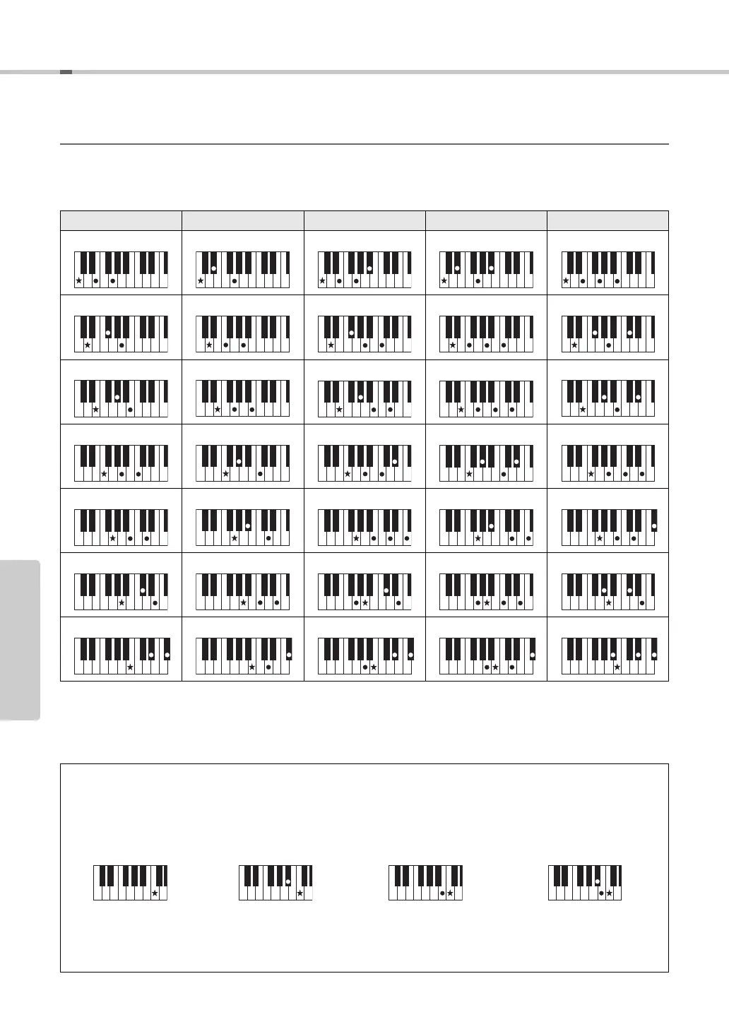 • When playing a chord which cannot be recognized by this instrument, nothing is shown