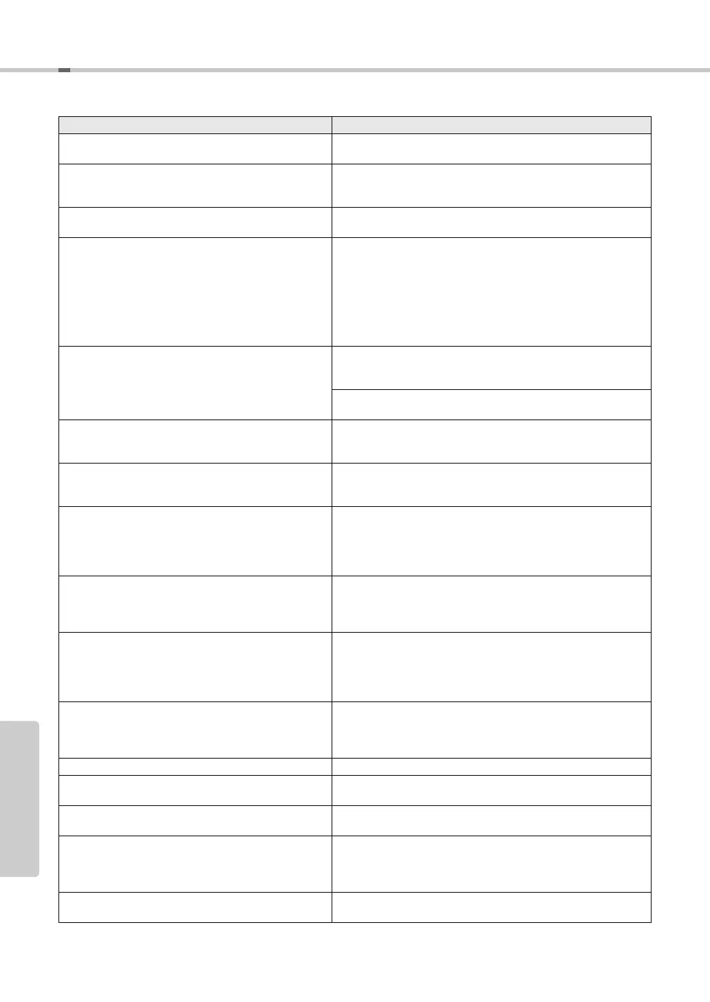 Problem Possible Cause and Solution
