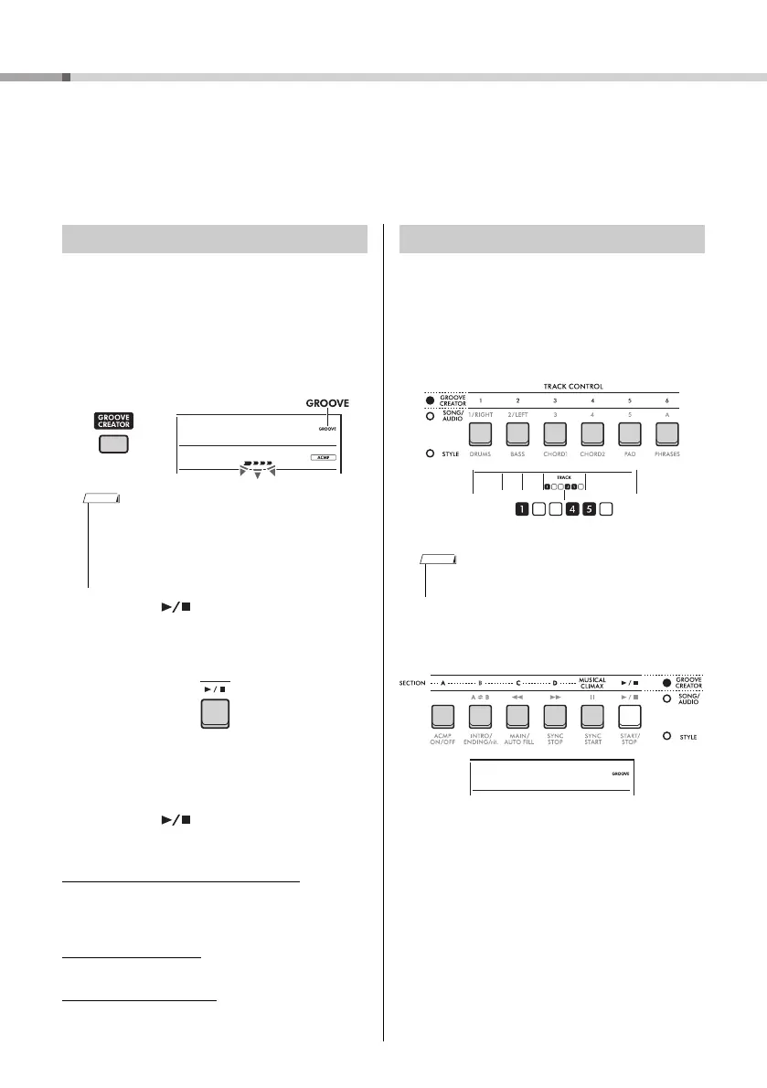 The Groove Creator function lets you combine rhythmic preset patterns and phrases (each