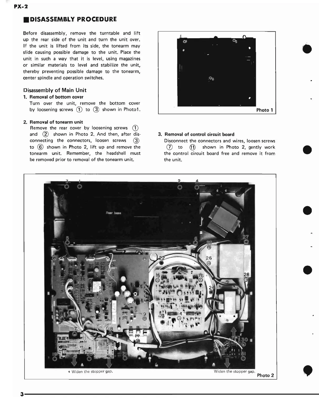 Yamaha PX-2 - Disassembly Procedure; Main Unit Disassembly Steps