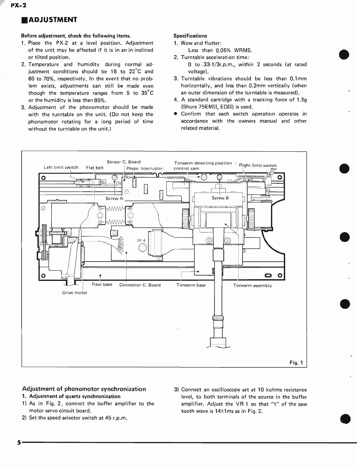 Yamaha PX-2 - Adjustment; Phonomotor Synchronization; Quartz Synchronization