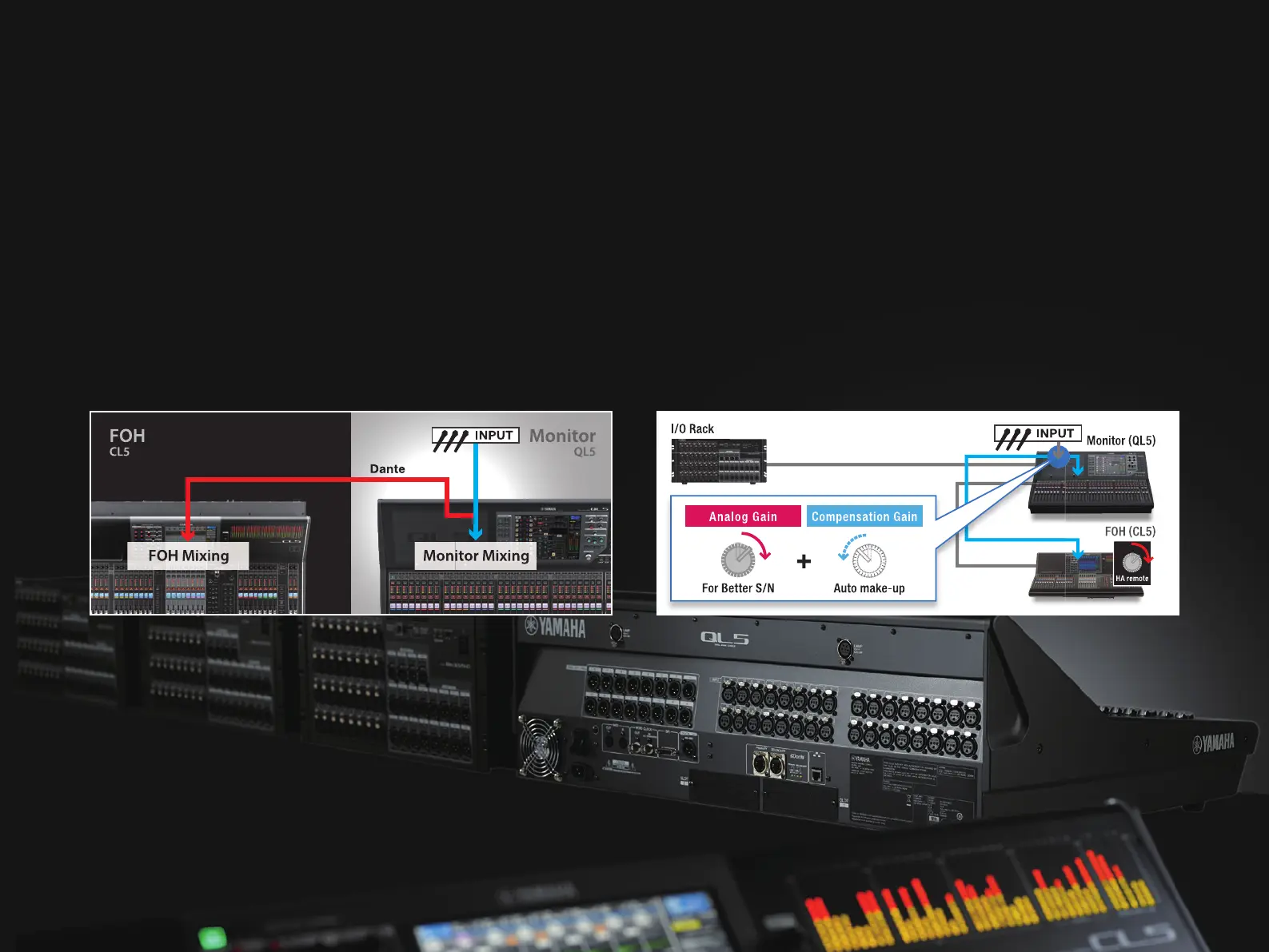 Not only is just one QL console required for both monitor and I/O use, but analog gains