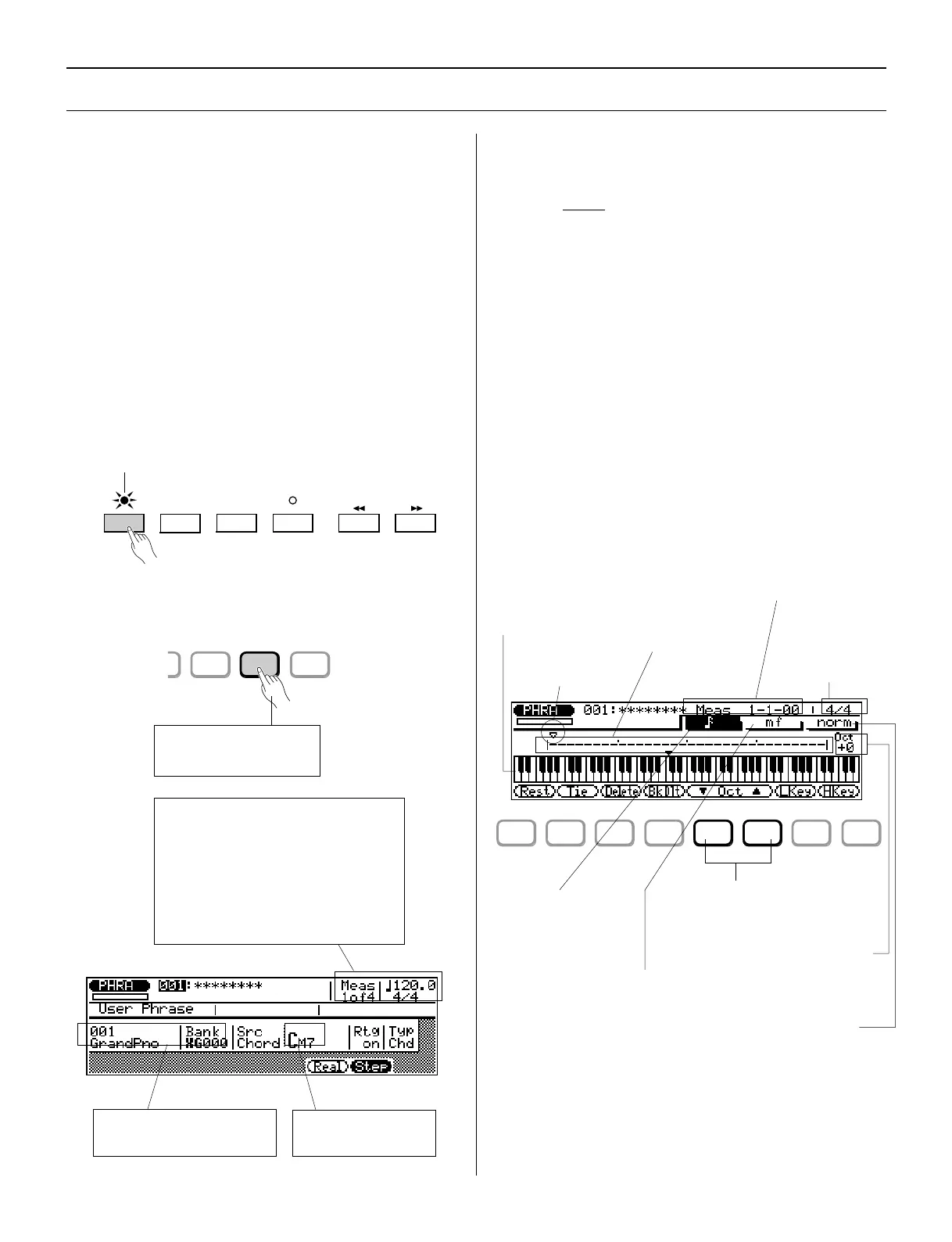 of each note. You can record complete Phrases using Step