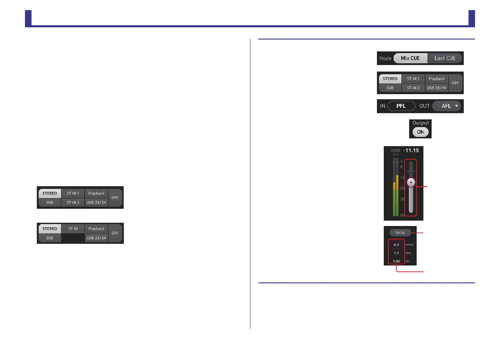 1. Touch a CUE mode button to select