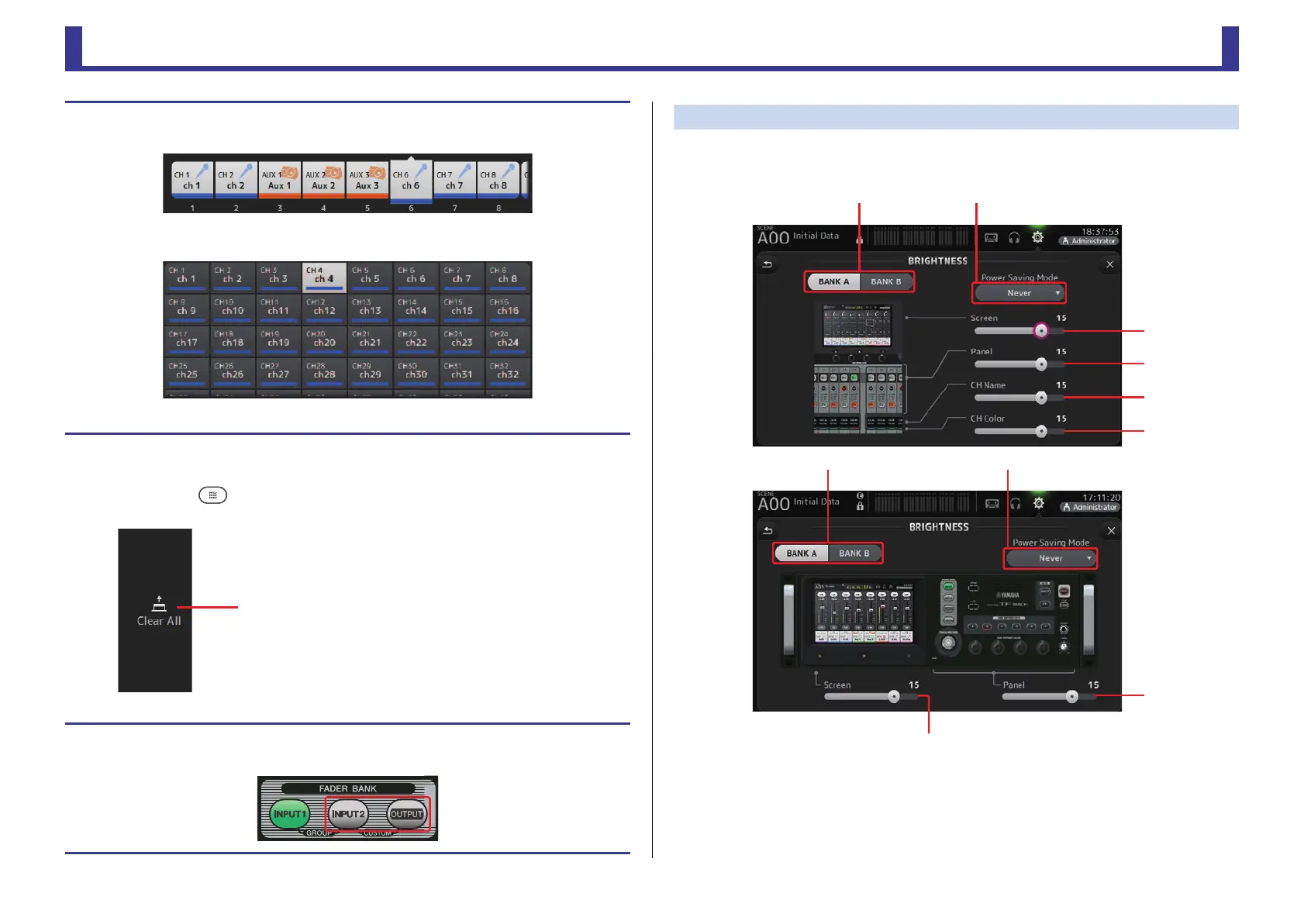 and channel colors on the top panel. You can save brightness settings into BANK A and BANK
