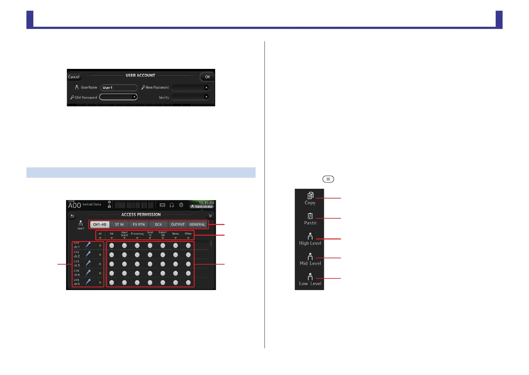Allow (on) and restrict (off) access to the corresponding parameters.