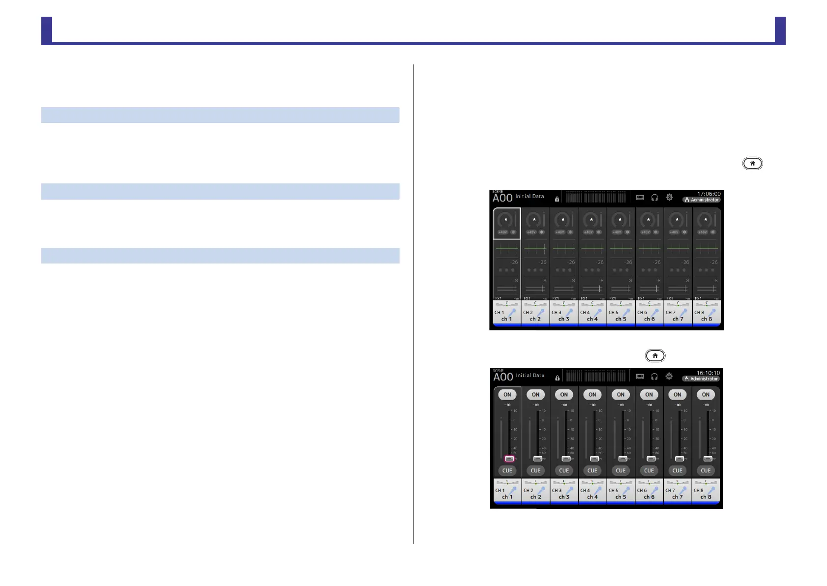 section and FADER section by pressing the Home key ( ).