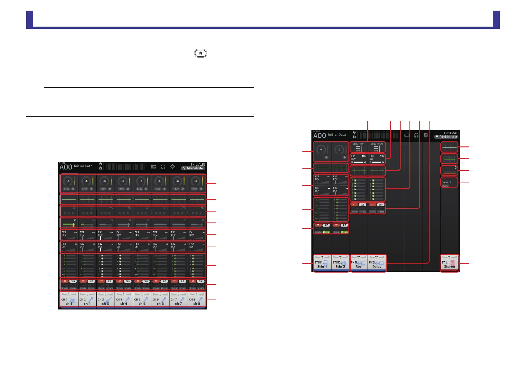 For the TF5/TF3/TF1, the CH STRIP section is displayed as the home screen; for the