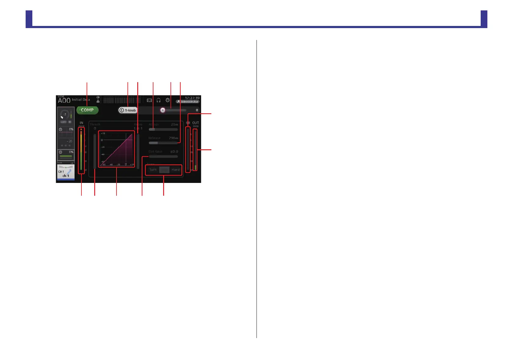 Allows you to configure the compressor for each channel. You can adjust settings using 1-