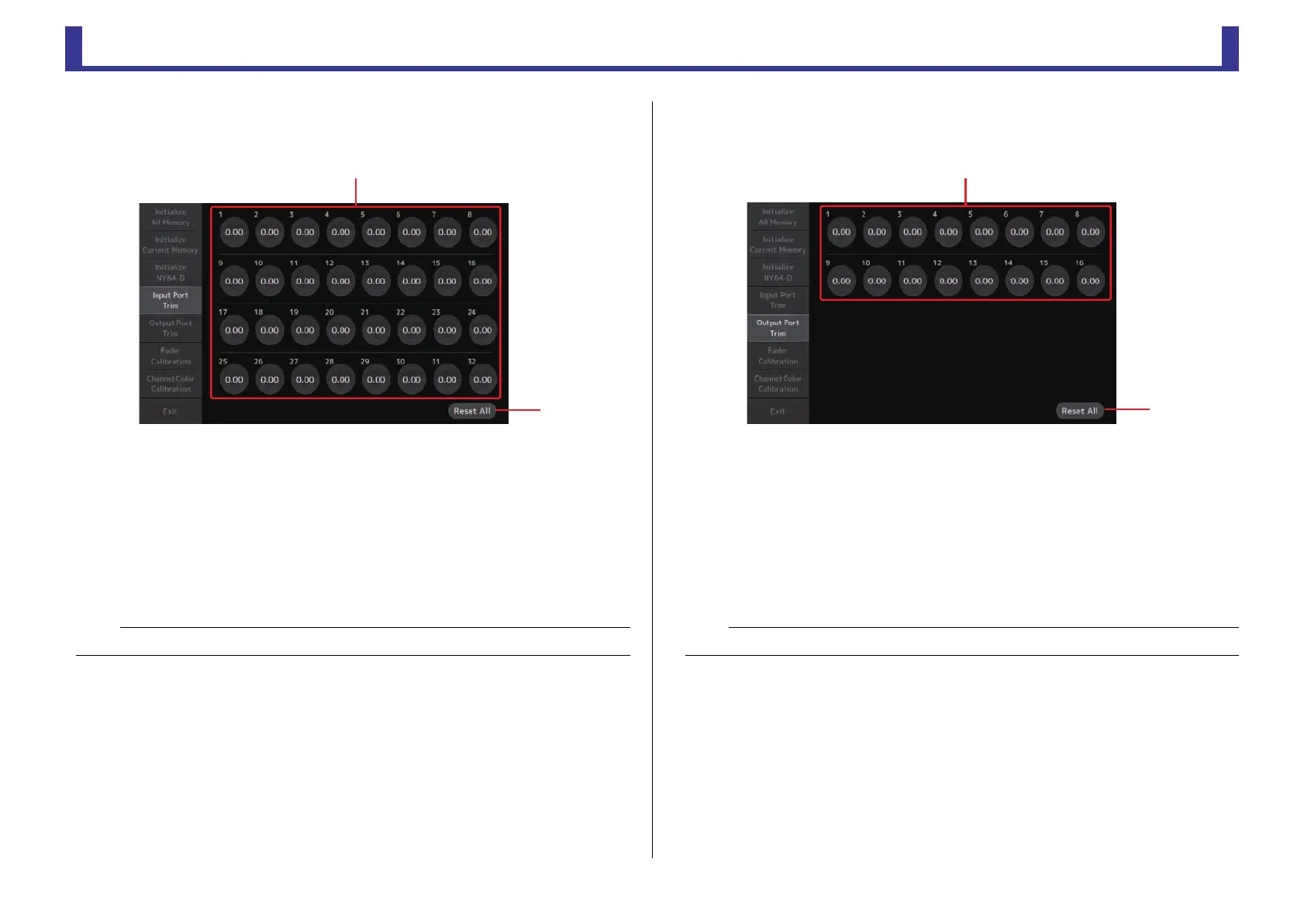 Allows you to adjust the gain of each OMNI OUT jack in 0.01 dB increments.