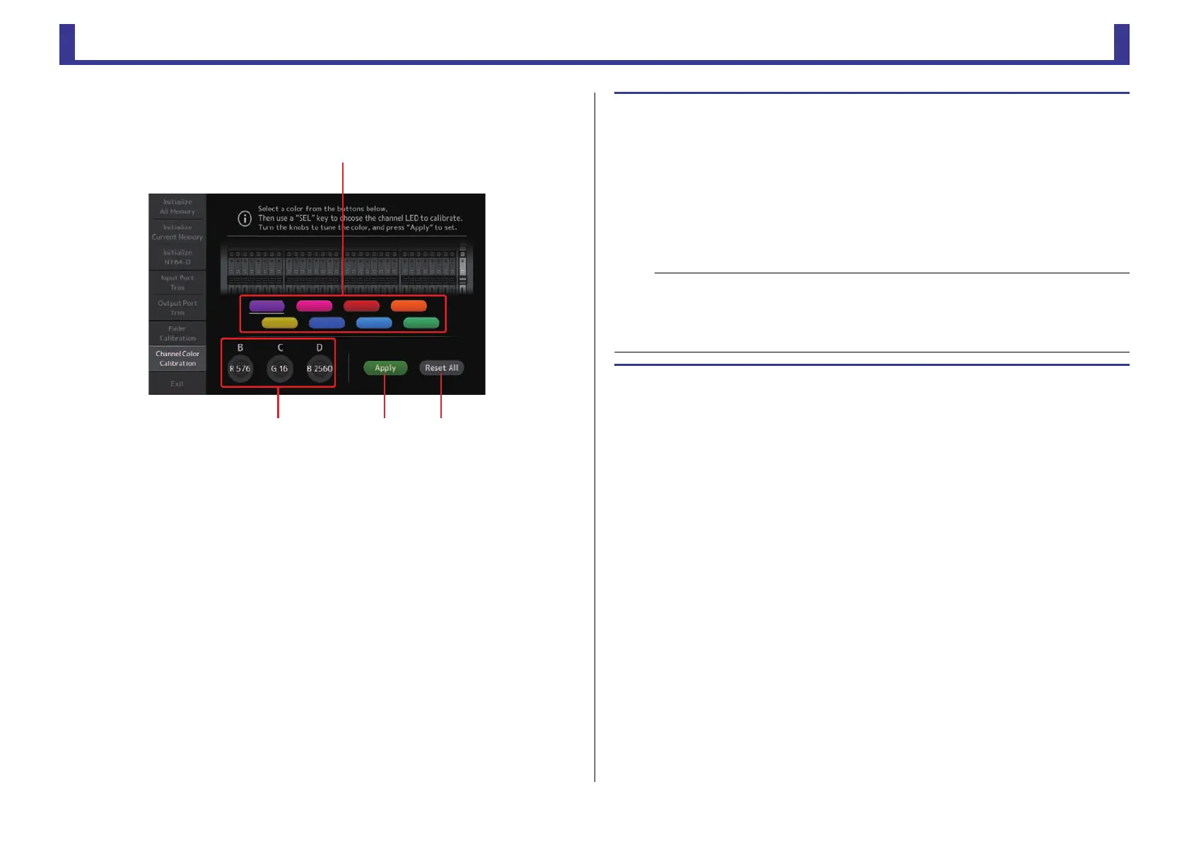 • The Apply button is only displayed after you begin adjusting the channel's color.
