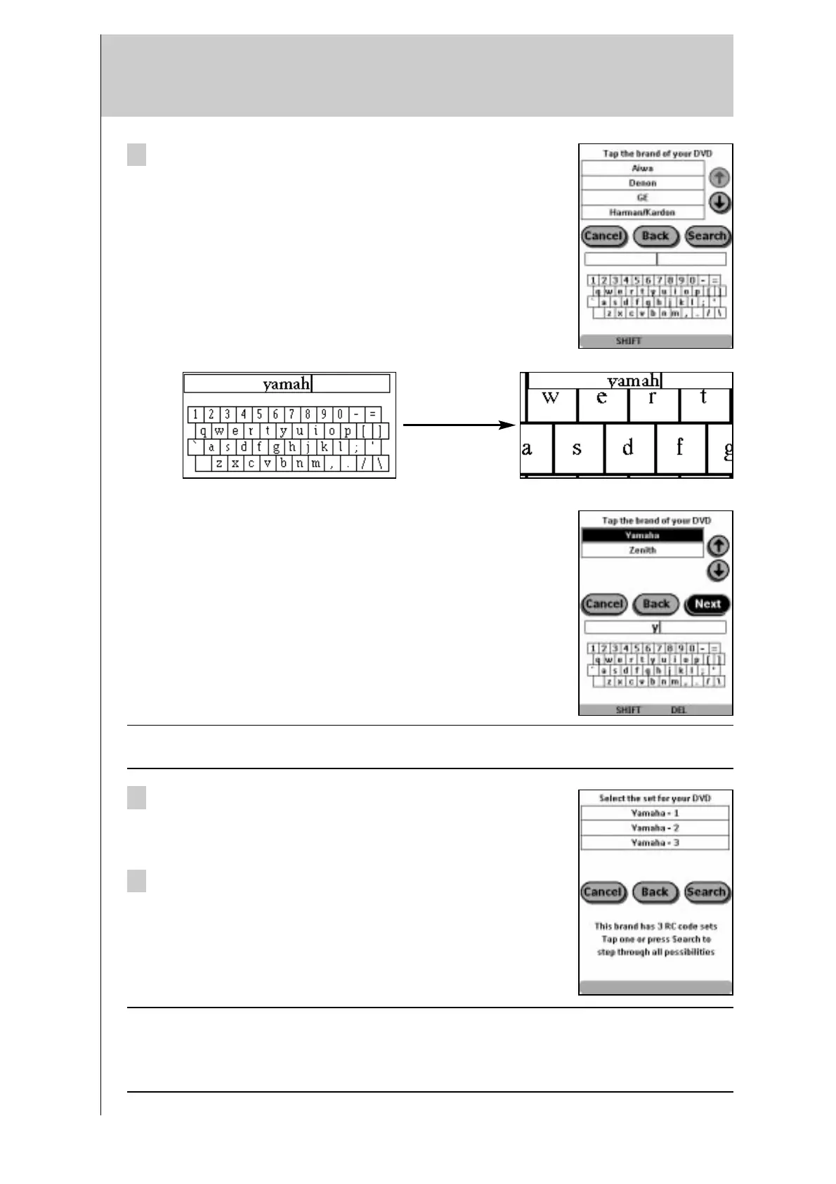 • Use the mini-keyboard to jump through the list of brands.
