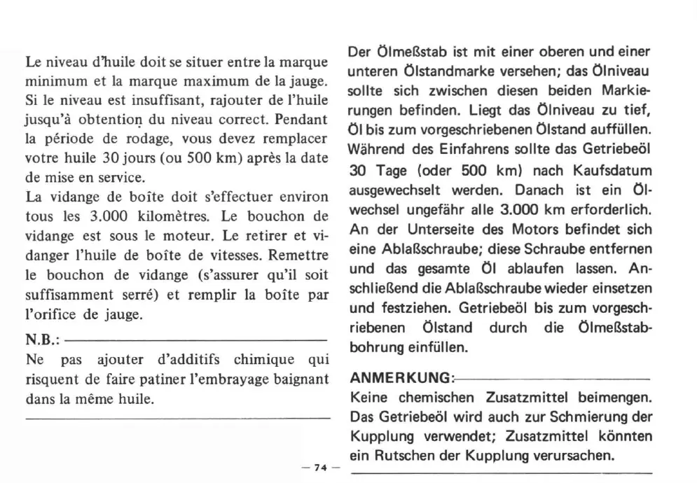unteren Ölstandmarke versehen; das Olniveau