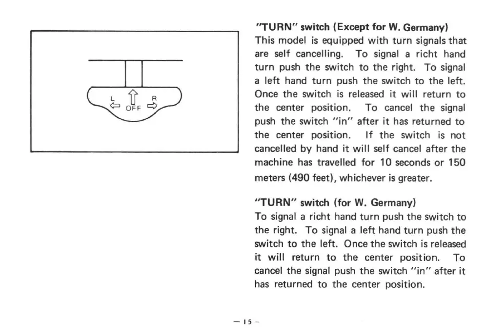 To signal a rieht hand turn push the switch to