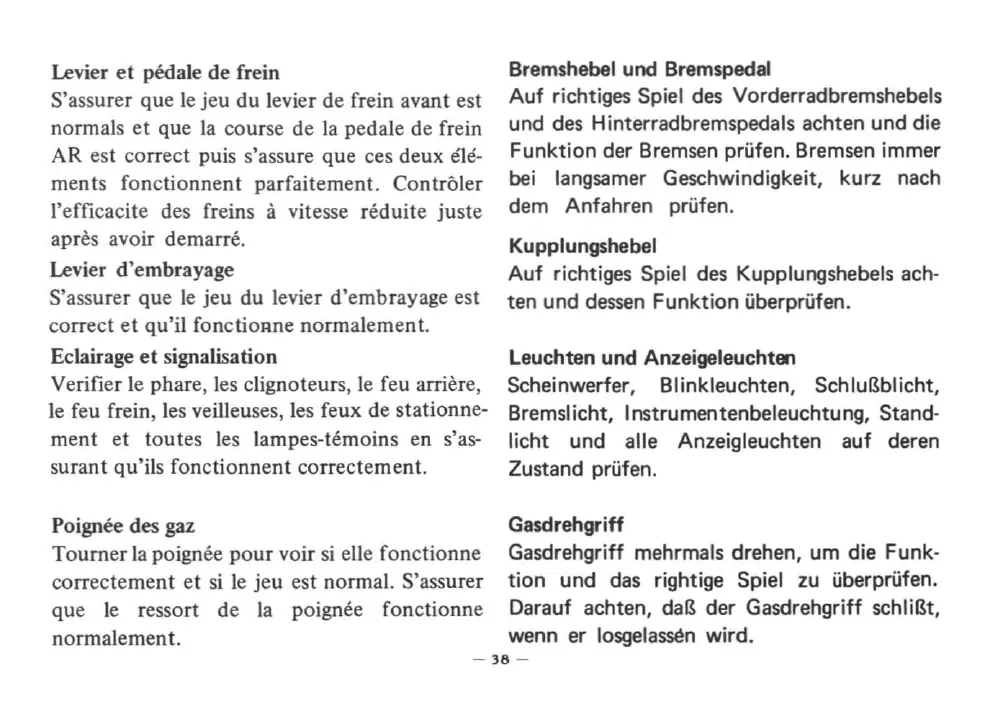 S'assurer que le jeu du levier de frein avant est