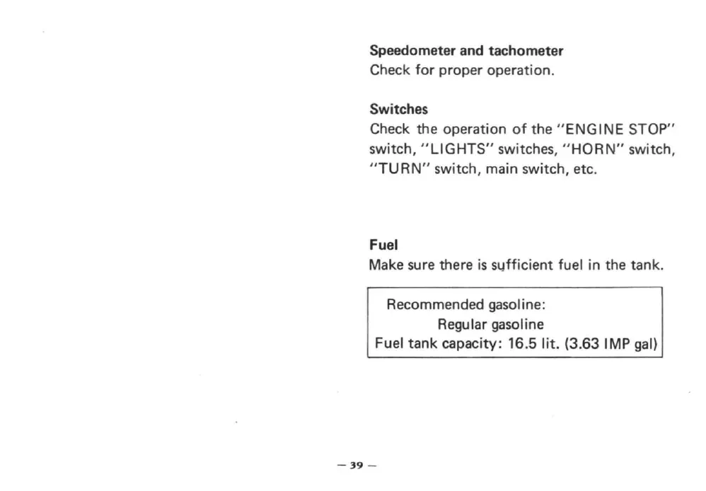 Fuel tank capacity: 16.5 lit. (3.63 IMP gal)