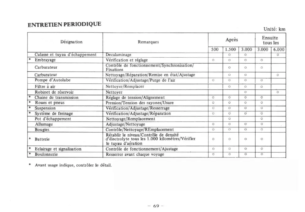 d'electrolyte tous les 1.000 kilometres/Verifier