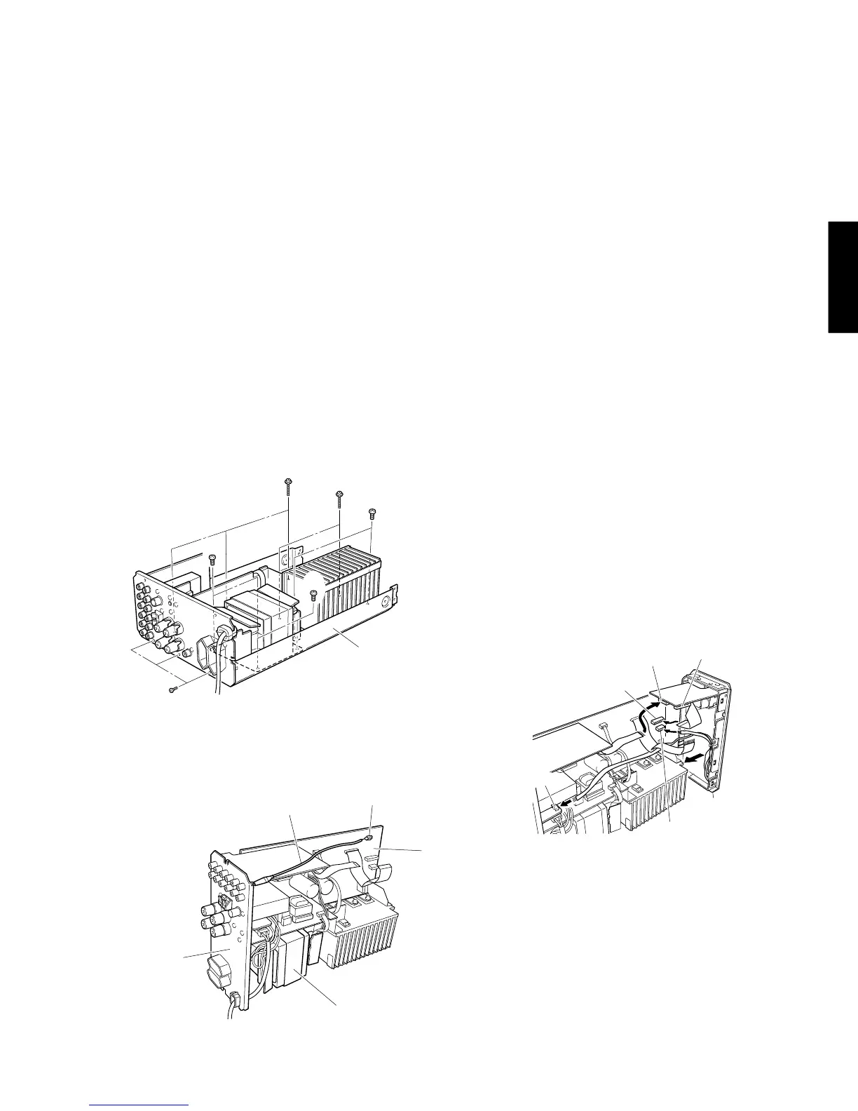 e. メインシャシーから電源トランス、MAINP.C.B.を(リ